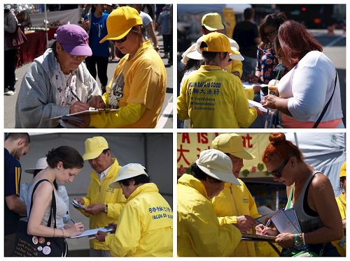 与往年一样,当地的法轮功学员也来此设立了展位,向民众传播法轮功的真相,揭露中共活摘法轮功学员器官的罪行,同时征集签名制止迫害、制止活摘,许多华人民众表示已听说过中共活摘的罪行,并表示谴责,许多人在制止迫害、制止活摘的征签表上签名。有的还声明了三退,有的表示想学法轮功 。