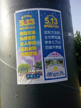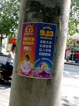 江西省南昌市的大街小巷于2017年5月间张贴和悬挂了纪念“5.13世界法轮大法日”的不干胶及展板,表达了南昌市民众对这一普天同庆节日的祝贺和法轮大法洪传的盛况!