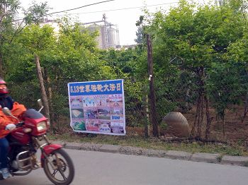 • 山东省临沂市蒙阴县多处可见真相展板、条幅、粘贴