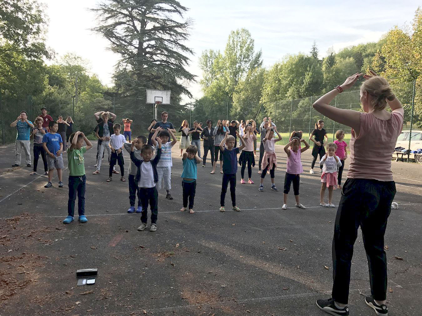 ![]() 图1:法国夏令营师生们在一起晨炼 |