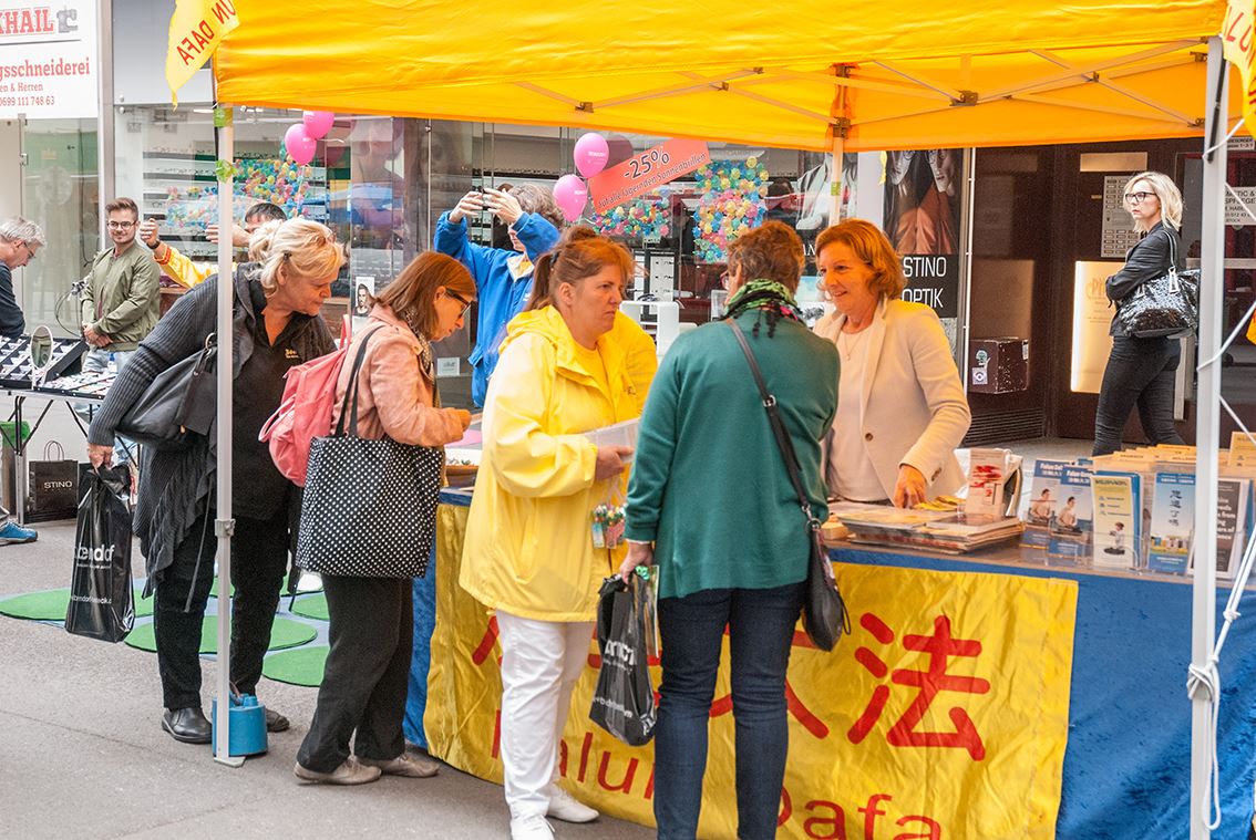【明慧网二零一七年九月十五日】二零一七年九月二日,奥地利法轮功学员在首都维也纳的市中心,参加街头艺术节活动,并向当地民众揭露中共迫害法轮功的暴行。