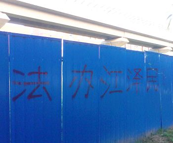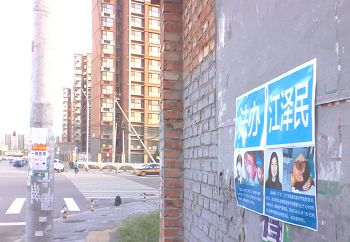 街头标语“起诉江泽民” 观者回应“我同意”