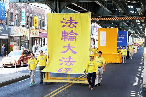 来自中国大陆的何女士觉得游行相当壮观,她表示,因为迫害,这个景象目前在中国是看不到的,更不用提纽约市警察还开车为法轮功学员们开路。