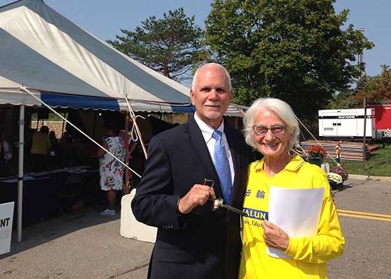 密西根州特洛伊市市长在观看了法轮功学员的十五分钟功法展示后说,“这种平静的感觉让我感觉很好。今天,就在此时我感觉真好。”