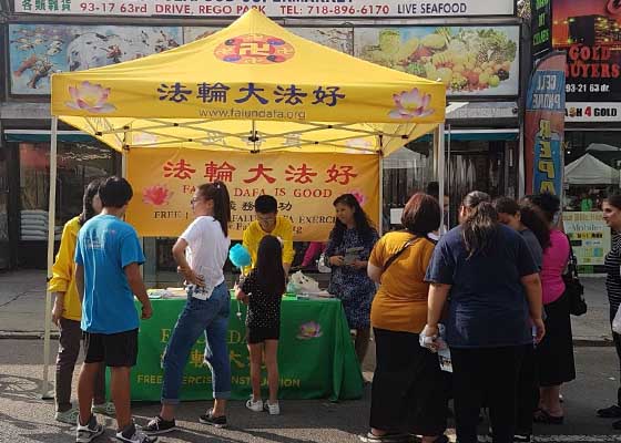 九月,在纽约很多社区都活跃着法轮功学员的身影,把法轮功的美好带给民众。