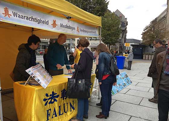 九月十六日,在文化市场上,法轮功学员向广大民众传递着法轮大法的美好,传递着这来自东方的文化。