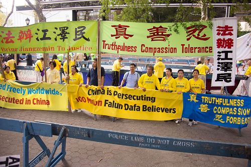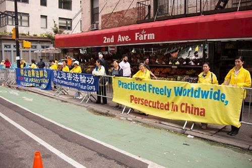 |  图1~5:2017年9月19日,纽约联合国大会期间,纽约法轮功学员在联合国附近和平请愿,要求中共停止迫害法轮功,法办江泽民。 |