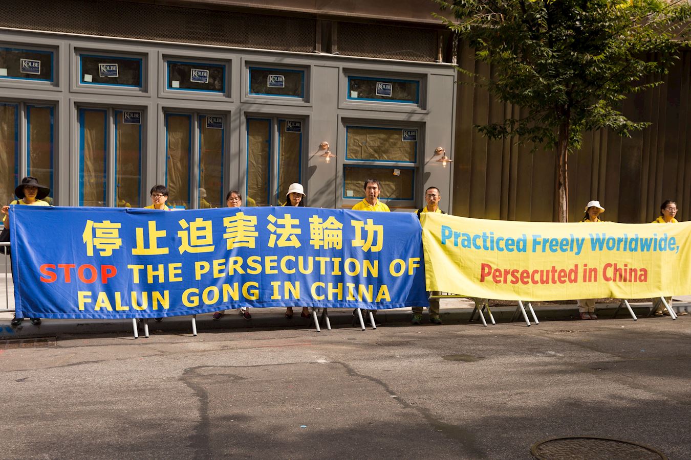 法轮功学员数日来一直在纽约曼哈顿的中共驻联合国代表团驻地附近和平请愿,表达海外法轮功学员的心声:早日停止迫害法轮功,还中国民众自由信仰的权利和自由炼功的环境。