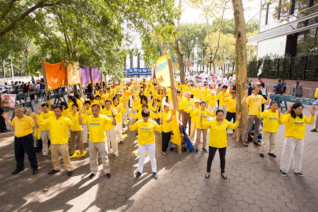 图1~5:联合国第72届高级会议于9月18日至22日在曼哈顿中城的联合国举行。纽约部份法轮功学员希望借此机会,让各国政要明白法轮功真相,共同制止中共迫害法轮功,法办江泽民。