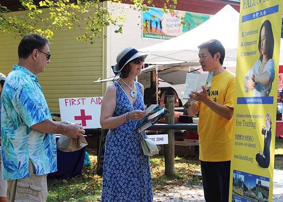 法轮功学员的摊位吸引很多人来了解功法和登记学功。了解了发生在中国的迫害事实的民众纷纷在“请帮助营救在中国受迫害的多伦多法轮功学员家属”的征签表上签名。
