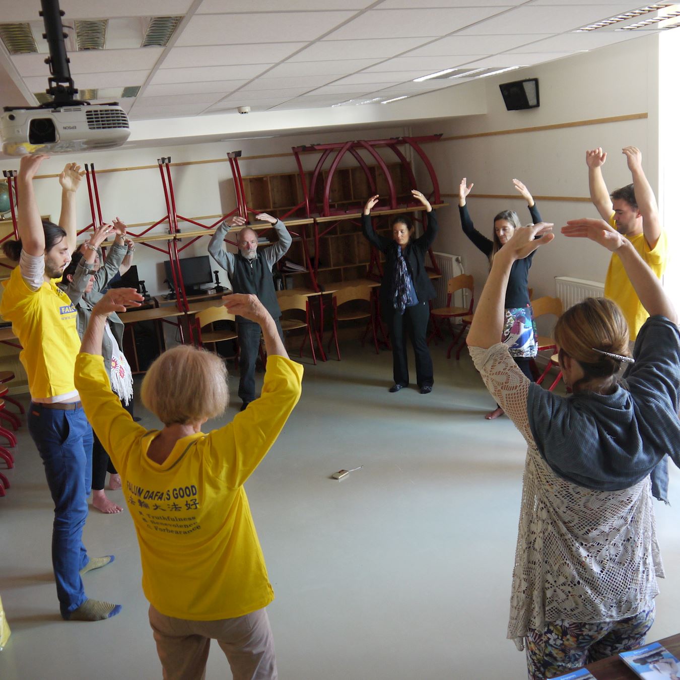 阿勒拜尔(Albert)和他的几个朋友星期天上午学炼了法轮功,下午又学了一次,他感到能量场很强,炼完功又和法轮功学员进行了交谈。