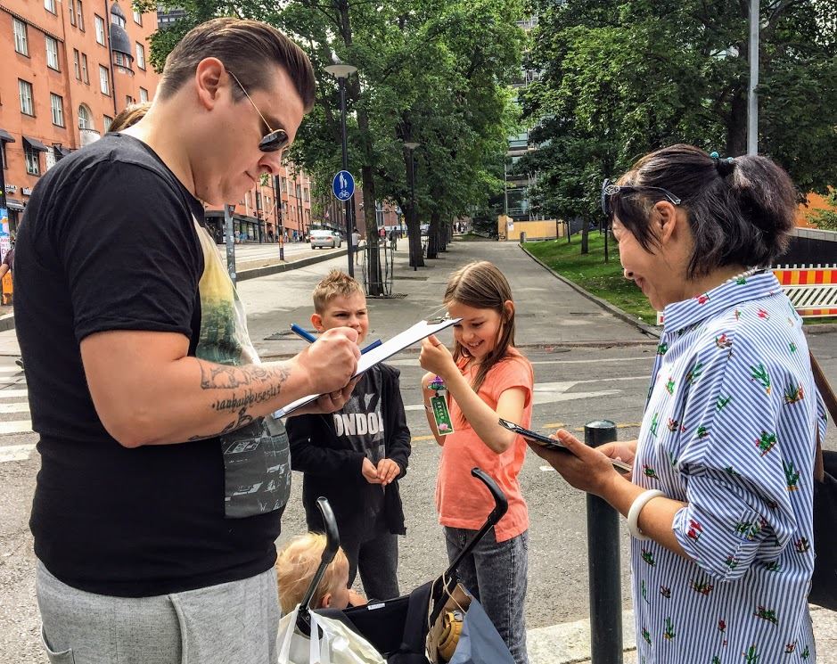 ![]() 图6:kamppi商业街,路人签名支持法轮功反迫害 |