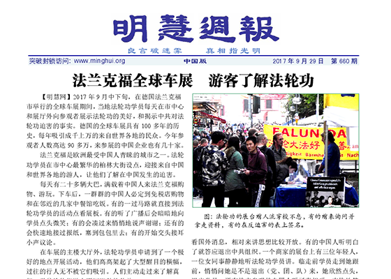 半年后,我店里来了四个中年妇女买东西,其中一个问我认得她不?然后她就提醒我说:“你不是叫我念‘法轮大法好,真善忍好’吗?”