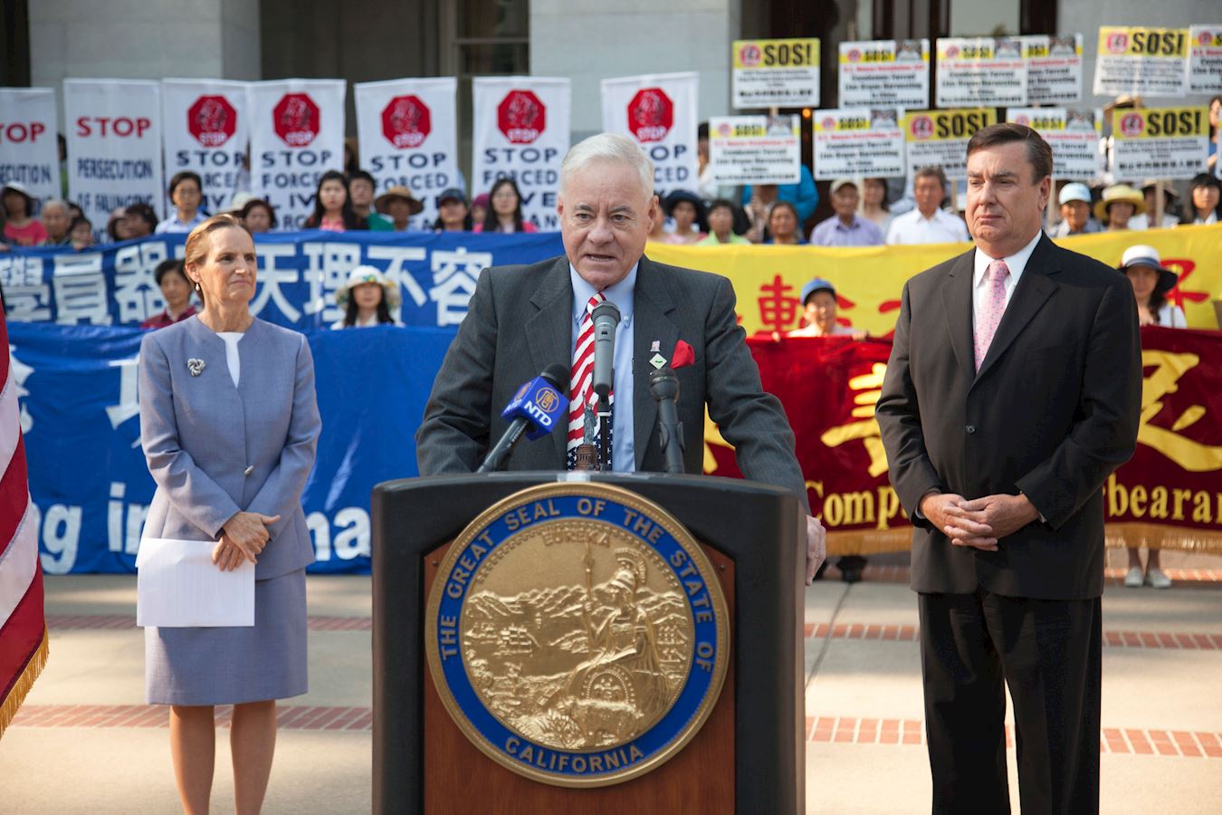 他表示,美国是一个伟大的国度,美国尊重所有的信仰,所有的人都能够实践的信仰,作为一个美国人他对此感到骄傲。他说:“当其它国家因基于信仰而对人们实施群体灭绝之际,我们不能对此视若无睹。许多逃离中共迫害的法轮功学员在加州安顿下来,他们还在为他们在中国的家人的安危担忧。我们要为那些无辜的人撑腰。”