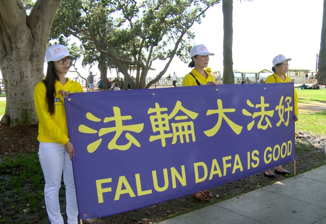 ![]() 图1:法轮功学员在圣莫妮卡码头公园集体炼功 |