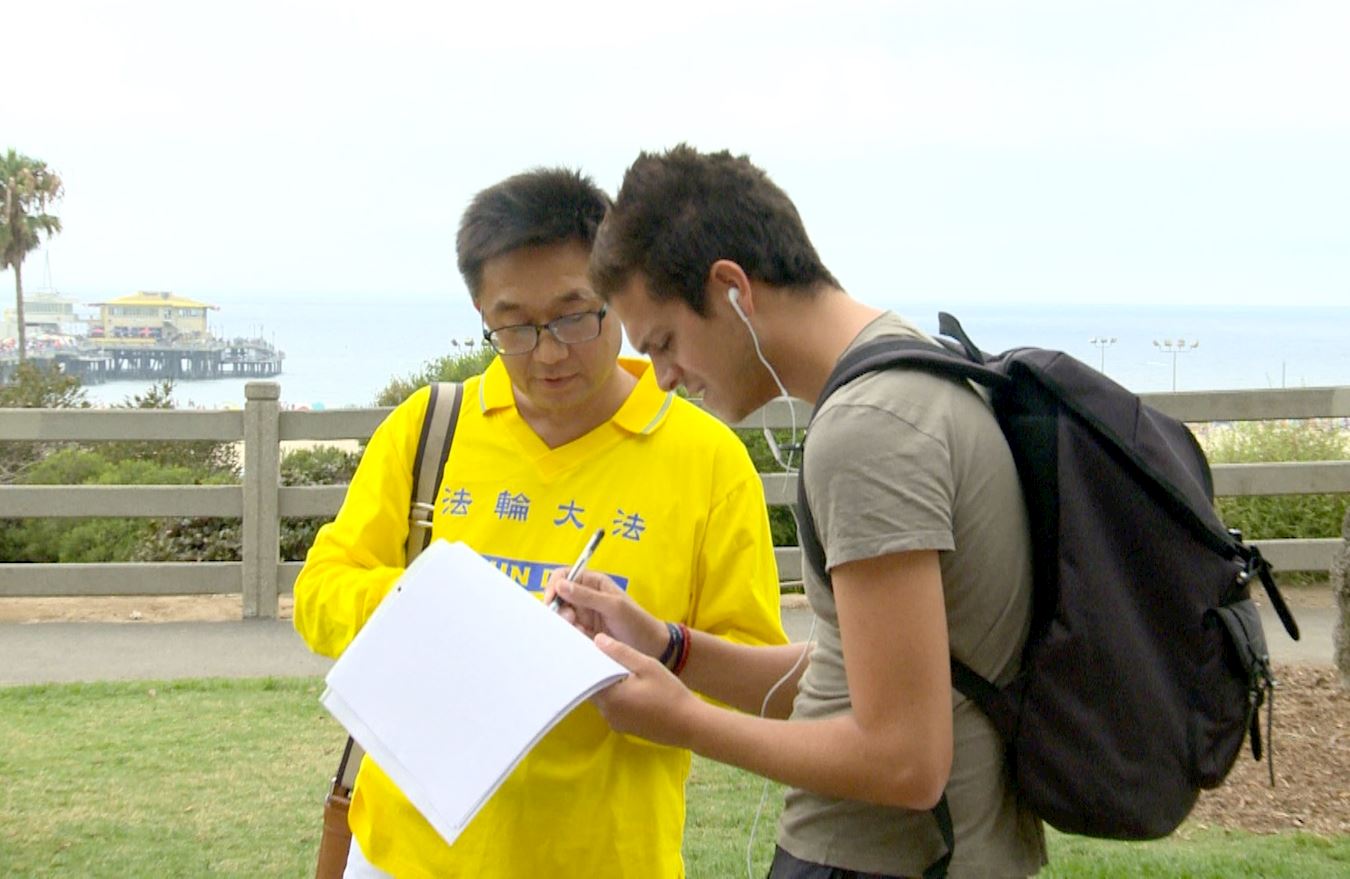14岁的中学生Kainoa Kanter拍摄了法轮功学员征签的场面,希望剪辑成短片来呼吁更多朋友关注。Kainoa Kanter说:“我觉得这太残忍了,让人愤怒,我认为美国和世界的每个角落,都该出一份力量。”“我的一个签名,加上告诉其他人,会表达出我们的关注和极力反对的态度。”