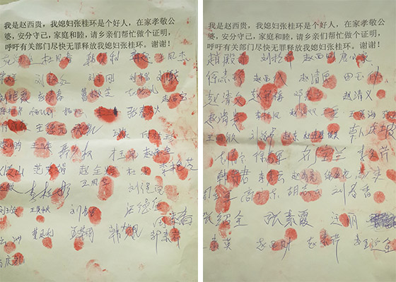 乡亲们知道张桂环被捕后,三百多人在要求无罪释放张桂环的呼吁书上签名和画押,表达自己的心声。