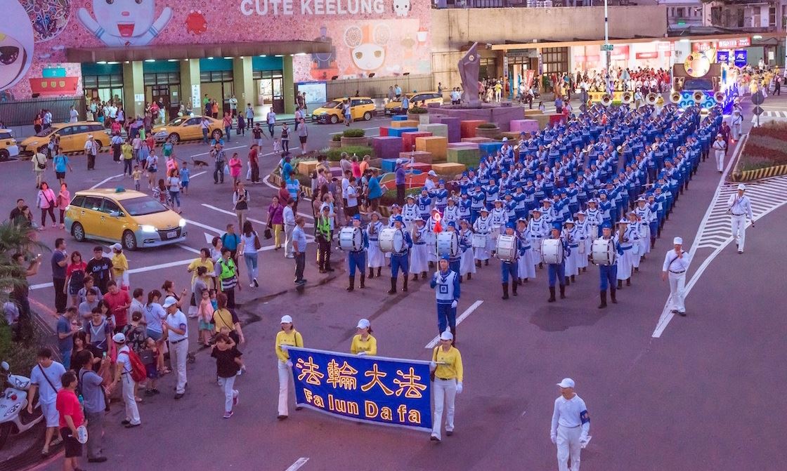 【明慧网二零一七年九月七日】台湾中元祭放水灯游行,于二零一七年九月四日晚间,在台湾基隆市区登场,各式各样缤纷的花车及游行队伍,蜿蜒数公里。台湾法轮大法学会也受邀参加此次游行,如同往年一样,法轮大法学员的大型花车、天国乐团及腰鼓队,都是群众瞩目的焦点。