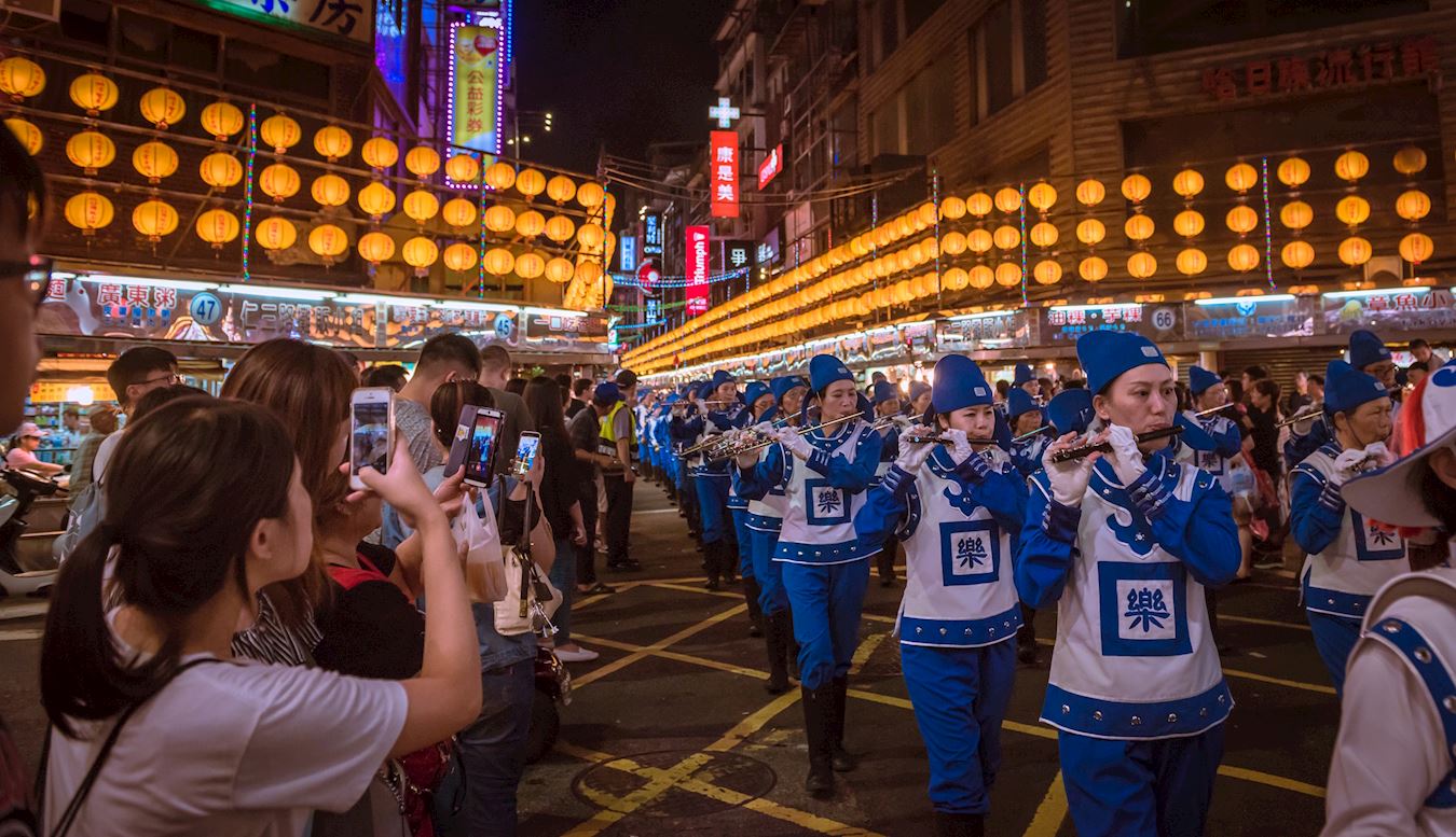 图2:庞大的天国乐团参加中元祭放水灯游行。