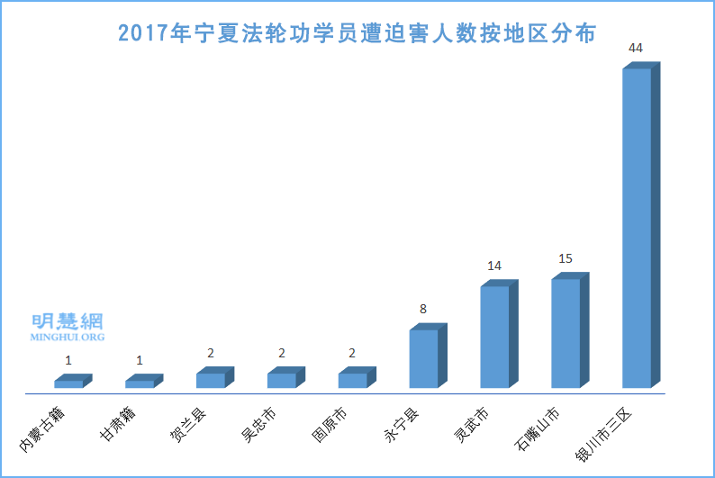 图2:2017年宁夏法轮功学员遭迫害人数按地区分布