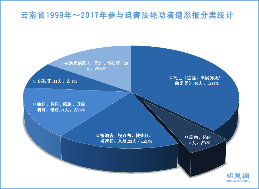 ![]() 图2:云南省1999年~2017年参与迫害法轮功者遭恶报分类统计 |