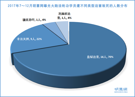 据明慧网2017年下半年(7月至12月)对法轮功学员被迫害致死报道的统计,在全国12个省、直辖市,23名法轮功学员被迫害致死。