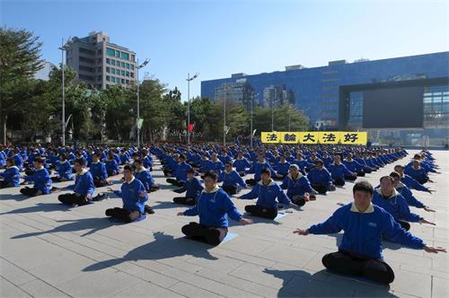 '图1~3:二零一八年一月一日,来自大台中地区的部份法轮功学员在台中市政府的大广场上炼功。'