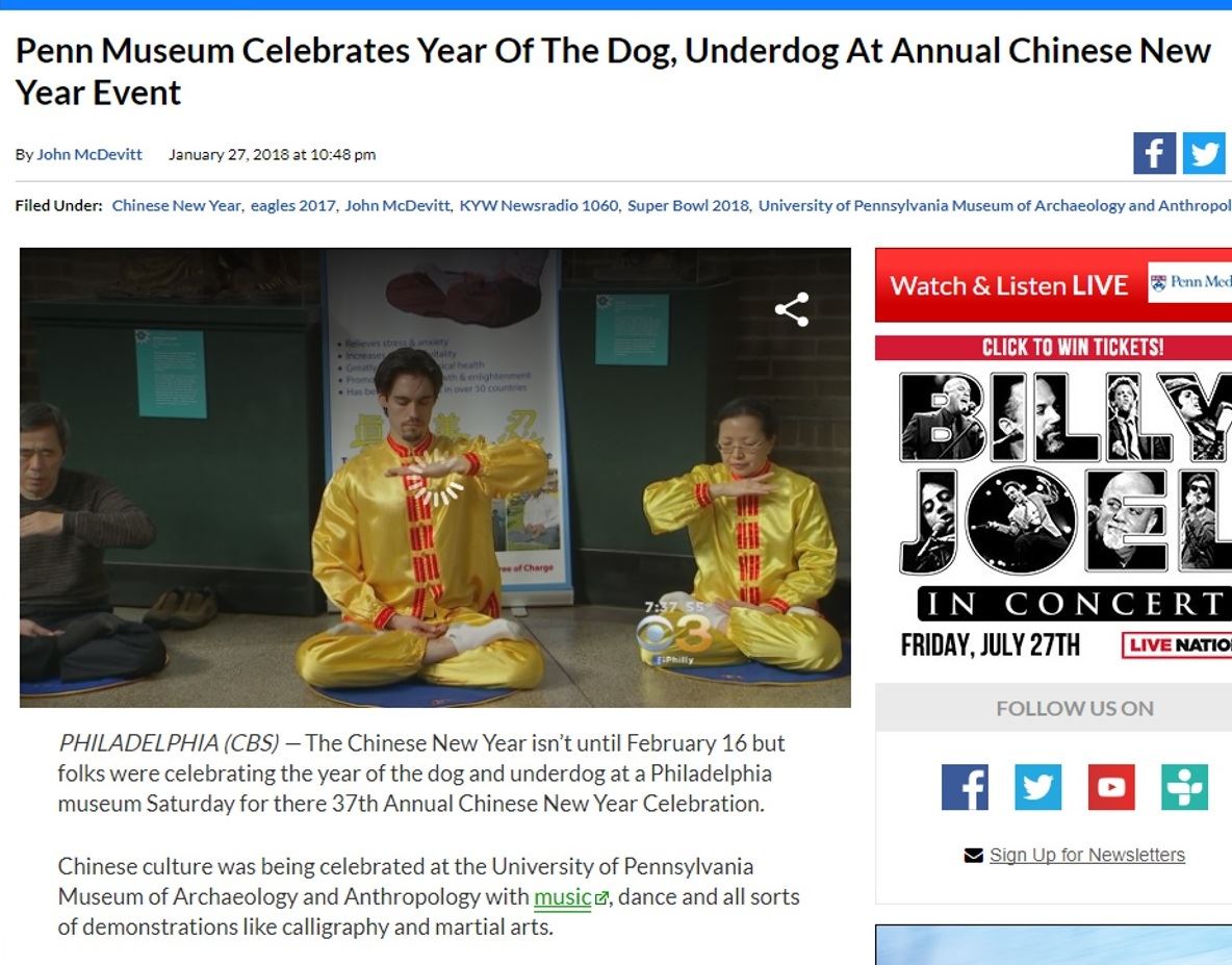 ![]() 图1:二零一八年一月二十七日,费城法轮功学员应邀参加了在宾夕法尼亚大学博物馆举办的中国新年庆祝活动。 |