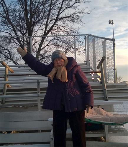 【明慧网二零一八年一月四日】二零一七年十二月三十一日星期日早上七点至九点,美国新泽西州北部气温低至摄氏零下十几度,寒风刺骨,九十九岁的吴老太太坚持到公园炼功。吴老太太生于一九一九年三月,一九九七下半年开始修炼法轮功。