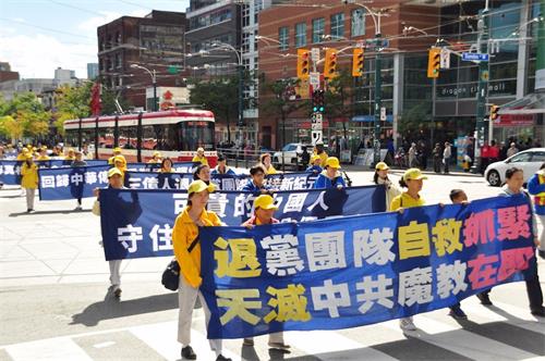 ![]() 图1~16:二零一八年九月二十九日,多伦多法轮功学员和民众在市中心举行声援三亿人“三退”(退出中共党、团、队)大游行。游行由天国乐团 、法轮大法好、停止迫害法轮功、腰鼓队、贺三亿三退大潮等五大方阵组成。 |