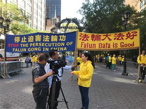 九月二十九日,总部位于委内瑞拉的Telesur电视台的记者在此经过,被法轮功学员和平请愿的场面所吸引,其记者采访了现场的法轮功学员。曾在中国大陆遭受过迫害的学员在接受采访时讲述了个人受迫害的经历。