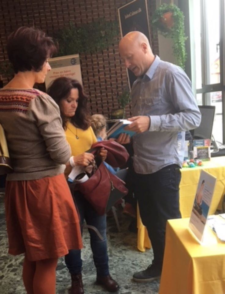 有些人单独来到法轮功学员那里,要求提供一份传单并询问有关法轮功修炼的许多问题。此外,更多的参会“志愿者”在展会上也前来索取信息。