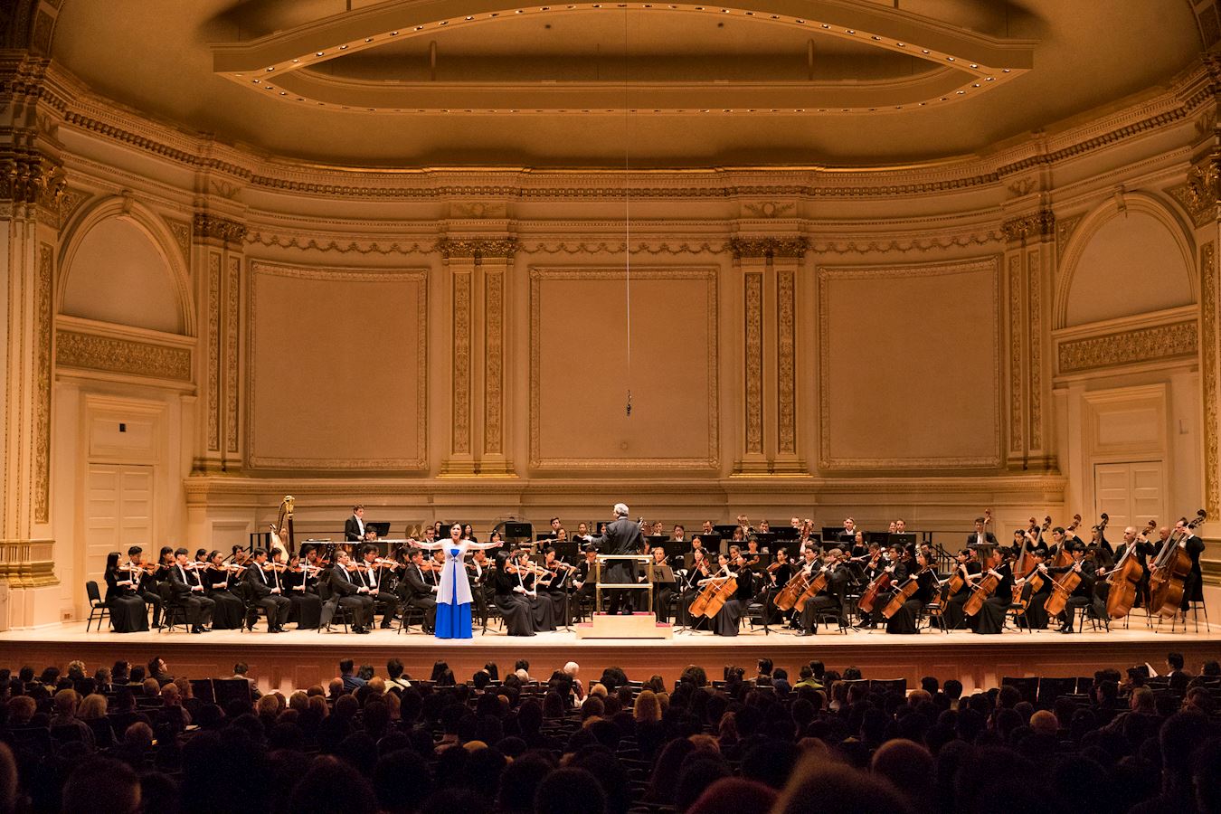 ![]() 图3:二零一八年十月七日下午,神韵交响乐团莅临纽约卡耐基音乐厅 演出。图为女高音歌唱家耿皓蓝正在演唱。 |