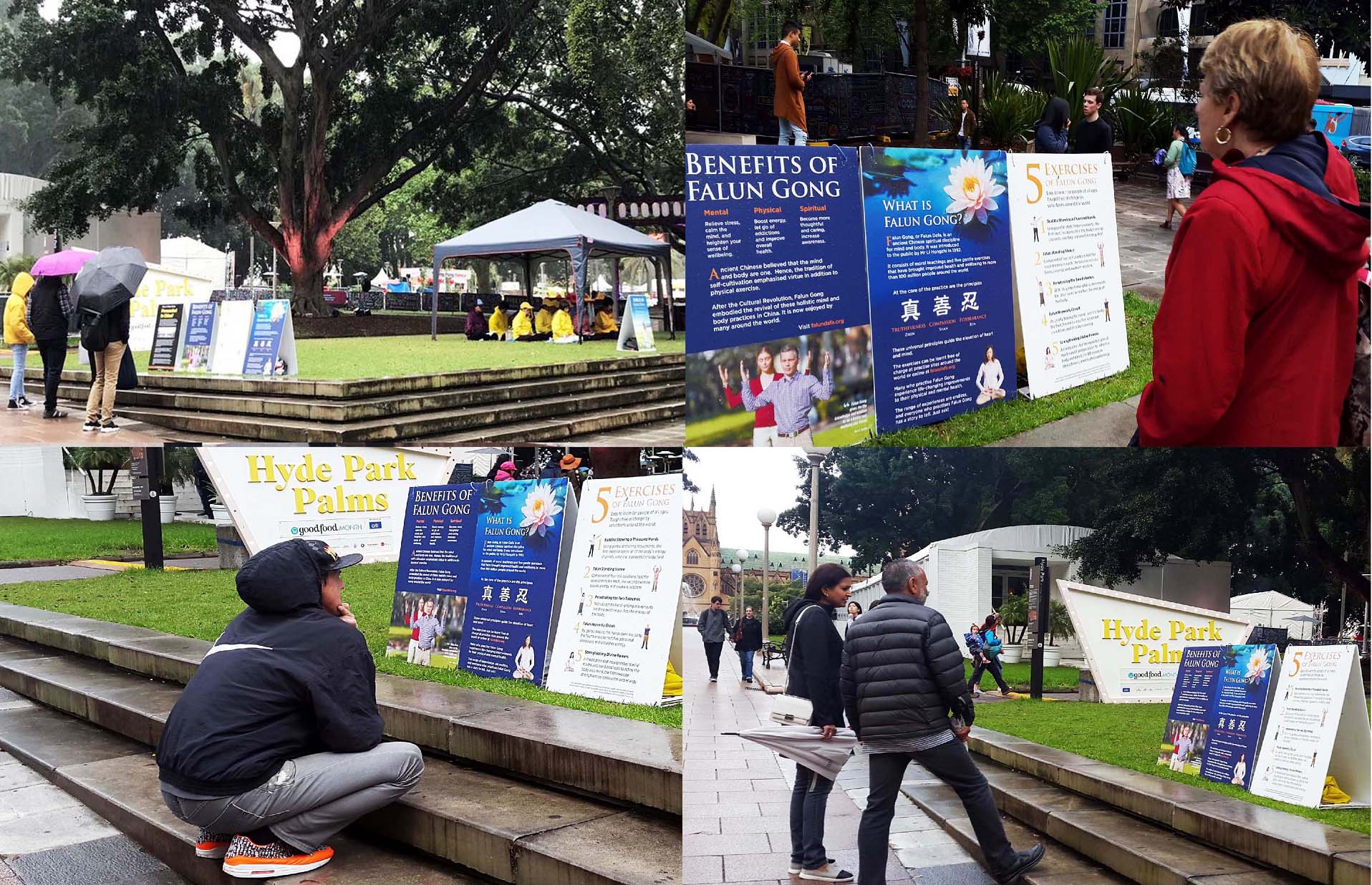 从今年十月四日至二十一日美食节期间的每周四至周日下午,无论刮风还是下雨,法轮功学员坚持举办活动,为游客提供免费教功,并讲述发生在中国的迫害真相,他们的努力受到民众的赞扬。