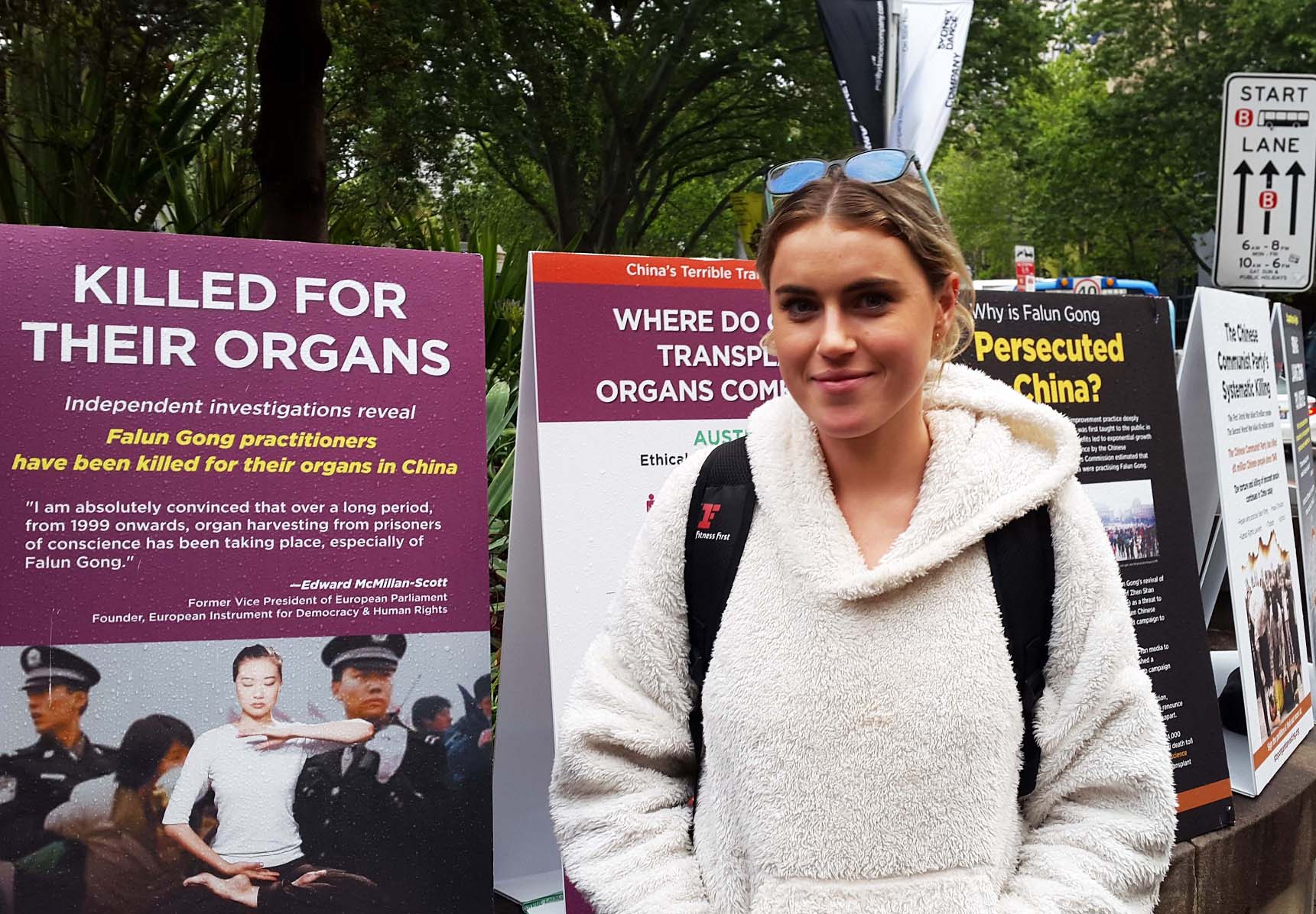 珀琵·海尔(Poppy Hill) 就是其中一位,她说:之前我经常看到在各地城里都有法轮功讲真相展位,但我通常没有时间去真正深入了解法轮功。今天当我看到法轮功学员在这里打坐、向社会公开介绍他们的修炼功法,我感觉法轮功特别祥和、放松和美好,我自己很想能成为其中的一员,并想了解更多其背后的传统文化和历史背景。我对中国传统修炼文化只知道一点点表面的东西,但还没有完全投入去了解。今天看到法轮功这么美好,吸引我走过来了解更多,也使我很想修炼法轮功。我拿了一些资料,想回家投入时间好好研究,并开始修炼法轮功。