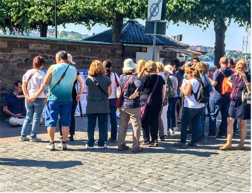 一天,一个四、五十人的大旅游团走近活动场地时,人群中有人在窃窃私语:“啊!法轮功、法轮功!”“还真是到处都是法轮功啊!”“可别拿他们的报纸啊!”
