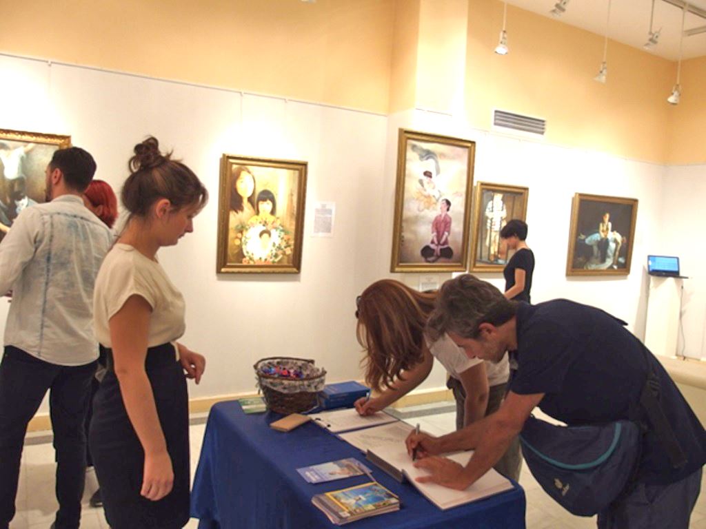 Üstün Asutay是伊斯坦布尔艺术家协会的创始人之一。他经常来美展看望法轮功学员。他感谢法轮功学员的付出,并祝美展成功。他还谴责中共对法轮功学员的迫害,并在要求停止迫害的征签簿上签字。