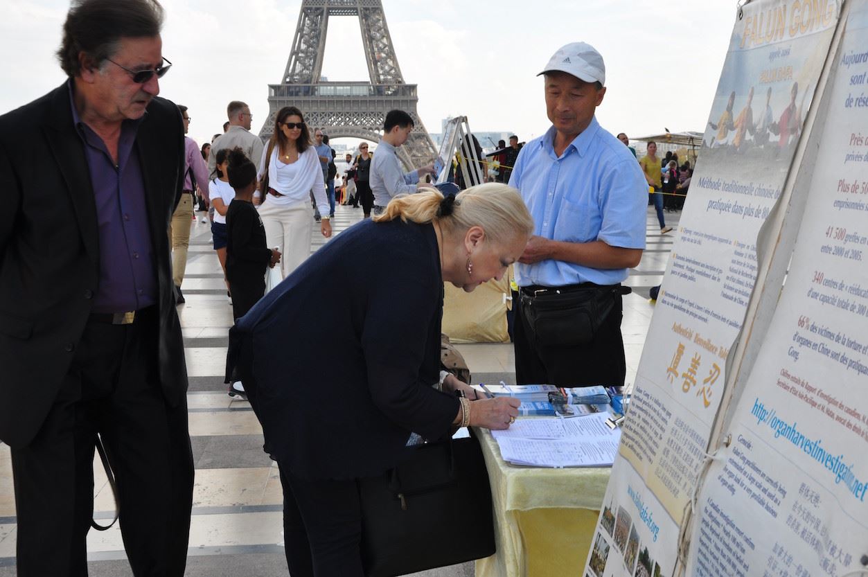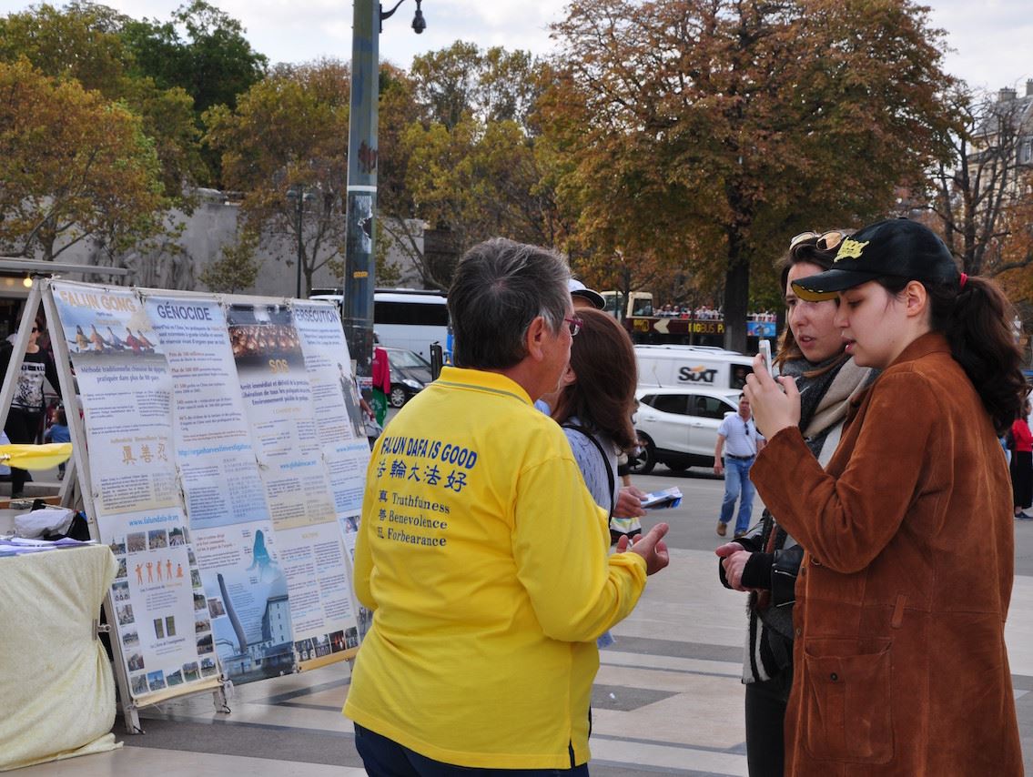 二十三岁的罗拉塞尔达(Laura Cerda)是学生,研究社会关怀,关心那些没有权利选择更好生活的人们。她来自西班牙巴塞罗那,在巴黎度假。在接受采访时她很激动,流着眼泪,有些哽咽:“这是好人正在遭受迫害,是非常不公平的,全世界都需要了解在中国正在发生的对这些人迫害的事情,特别是专制集权不想让人们通过其它管道了解到的事情真相。”