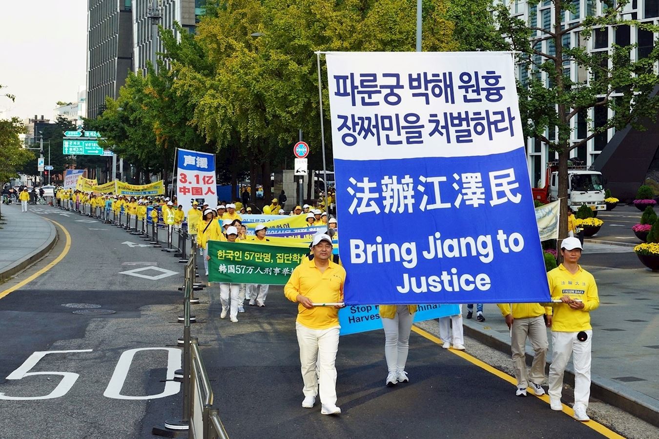 香港法轮大法学会会长简鸿章先生也参加了本次游行,他说:“为了让更多的人了解法轮大法的美好,我也来参加这次游行。来韩国参加活动有一种清新的感觉。”他并介绍了香港的情况,“在香港,中国共产党施加重压,但是法轮功学员依然坚定不移”,简先生表示,希望中国国内对法轮功学员的迫害尽快结束。