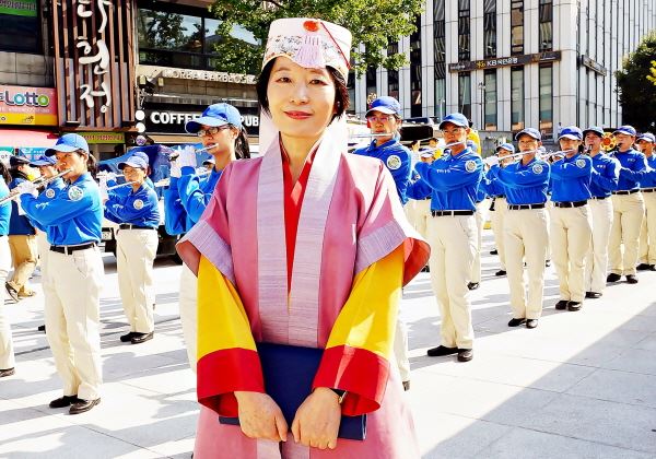 身着高丽时代宫廷服饰的金善子说:“越修炼,自己的心性就变得越善良,身体的健康就更不用说了,二十年来,(没去过医院)从来没用过健康保险。”她还说,“举行一次这样的活动很不容易,希望市民一定要来看一下,了解真正的法轮功,也希望大家来修炼。”