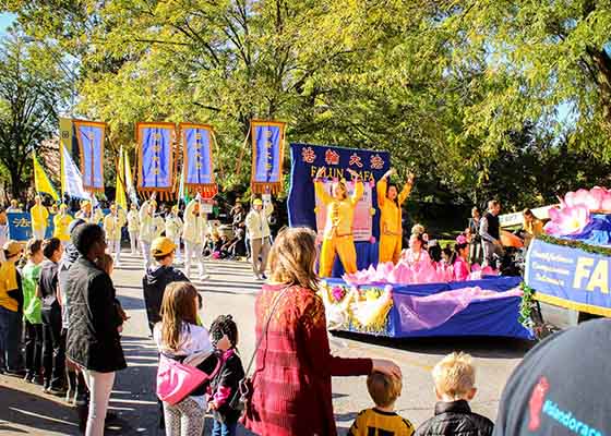 2018年10月20日,美国密苏里州的法轮功学员参加了密苏里大学哥伦比亚分校一年一度的返校节游行。