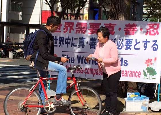 十月二十日和二十一日,法轮功学员在爱知县名古屋市最繁华热闹的地段,向民众介绍功法,揭露中共对法轮功学员的迫害,得到人们的支持与声援。