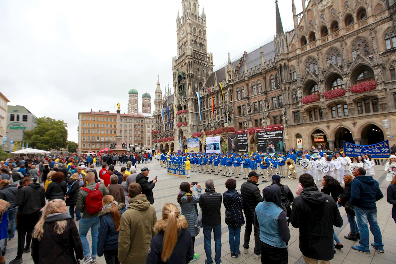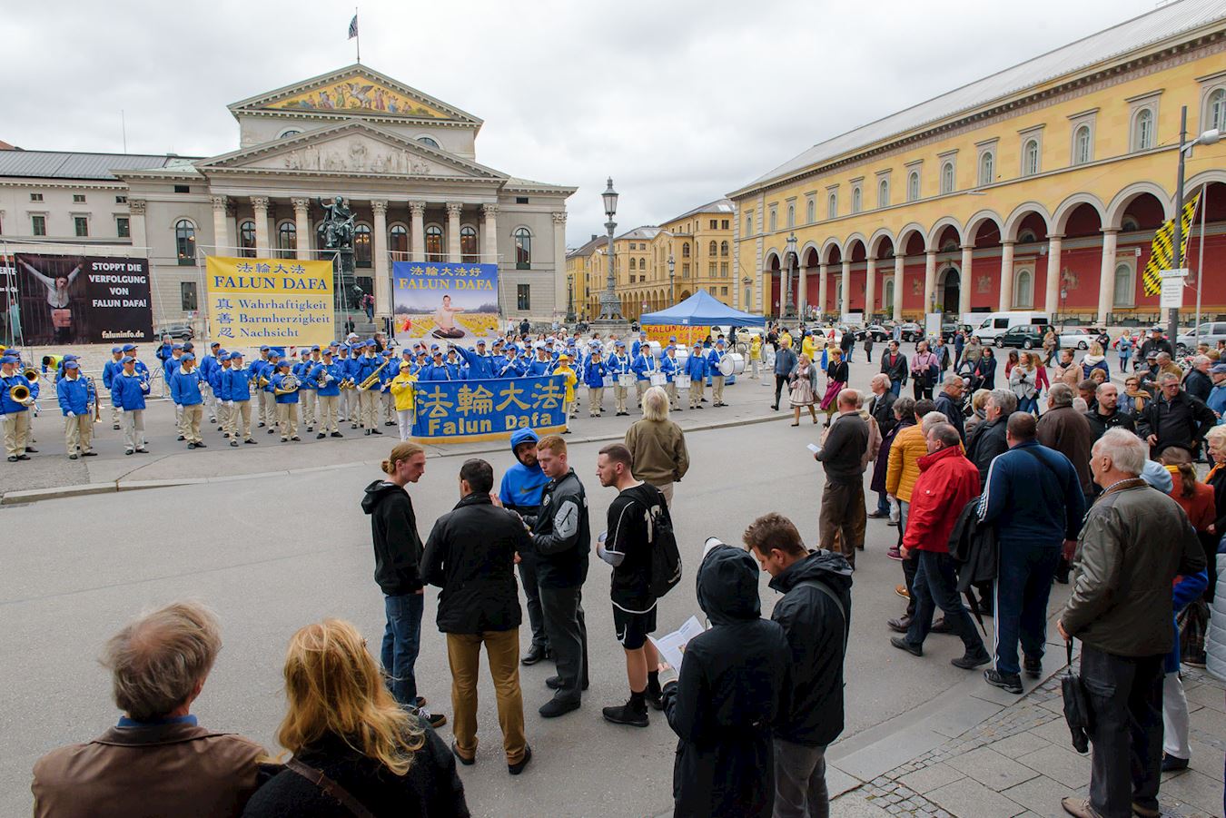 ![]() 图2:法轮功学员在国家歌剧院前的马克斯-约瑟夫广场(Max-Josef Platz)举办集会。 |
