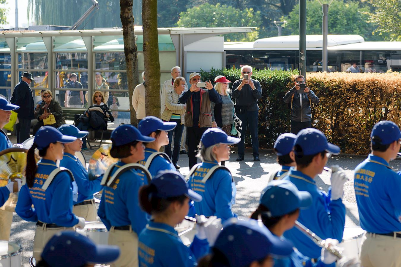 瑞士国民院议员露丝玛丽·奎格蕾蒂(Rosmarie Quadranti)女士因故不能参加当天的集会,但是她给法轮功学员发来声援信。在信中她赞叹:“天国乐团为了人权的付出,为了让人们关注仍在中国持续的对法轮功的迫害,采用的方式方法令人敬佩。”