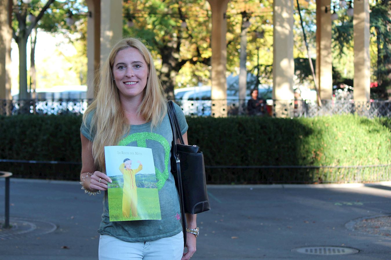营销经理桑德拉(Sandra)来自德国,目前在瑞士工作,因为有朋友修炼法轮功所以她经常会接触到法轮功:“我觉得法轮大法很好,给社会带来了道德回升,法轮大法非常纯净,保留了根本的道德价值。(法轮功学员)在很多人不愿出力的地方付出,比如为了人权。他们一直非常友好平和的告诉人们在中国发生的这一切。”