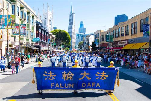 【明慧网二零一八年十月八日】(明慧记者王英美国旧金山报导)一年一度的旧金山哥伦布日大游行十月七日在旧金山举行。旧金山湾区的法轮功学员再次应邀参加,受到主办单位和观众的欢迎。首次看到法轮功学员队伍的大陆人表示,法轮功的队伍很壮观!有气势!感觉到有一种很强大的能量场。
