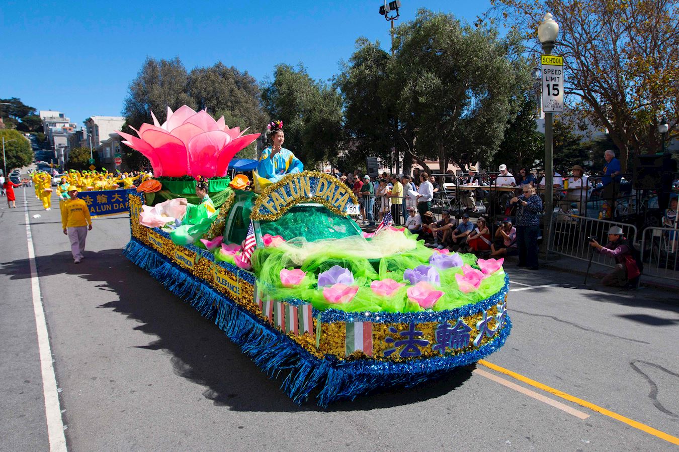 旧金山哥伦布日游行 华人赞法轮功队伍