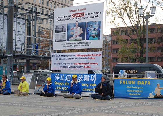 - 德国器官移植会议期间揭露中共活摘罪行(图)- 十一月八日和九日,法轮功学员在会场对面举办为期两天的信息日活动,向德国医学界揭露中共对法轮功学员的活摘器官罪行。