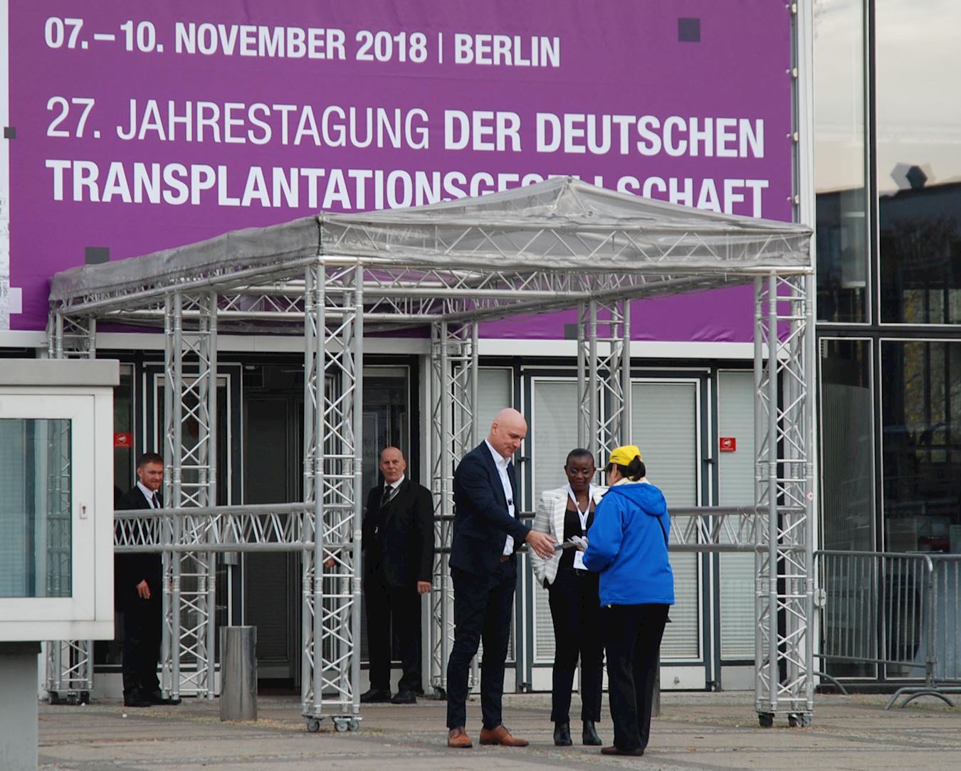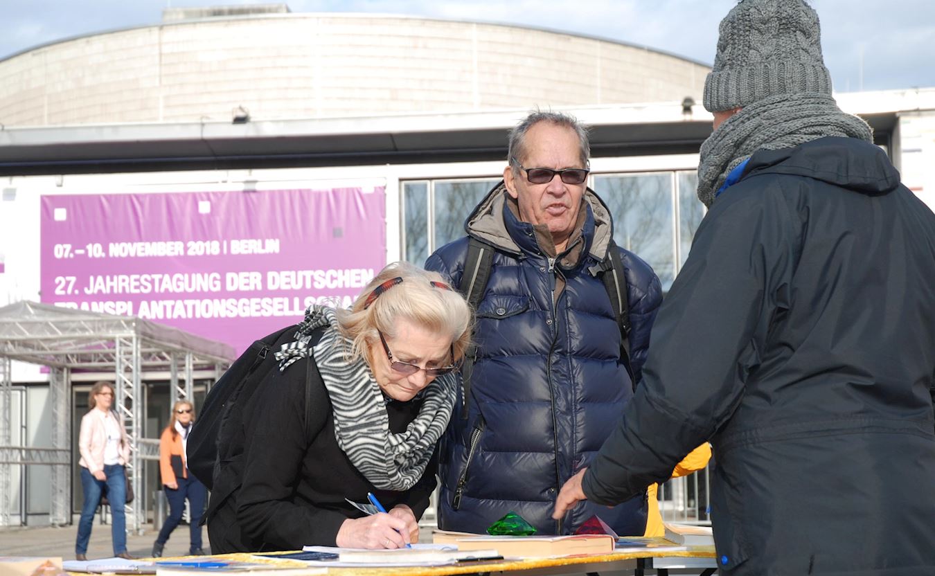 【明慧网二零一八年十一月十日】(明慧记者雪莉柏林报道)二零一八年十一月七日至十日,在第二十七届德国器官移植会议在柏林Kosmos多功能会议中心举行。十一月八日和九日,法轮功学员在会场对面举办为期两天的信息日活动,向德国医学界揭露中共对法轮功学员的活摘器官罪行。