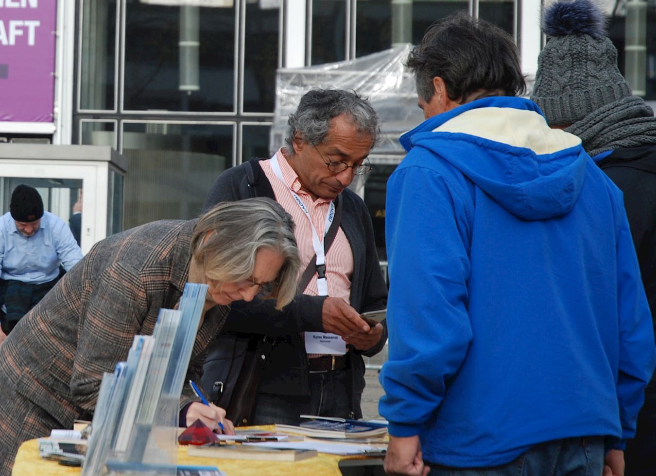 亚历山大·海瑟尔(Alexanda Hessel)先生是个来参加会议的生物学家。他早上入场前和学员聊了很久。下午休息时从会场出来,马上过来签字,离开的时候回头向学员竖大拇指。